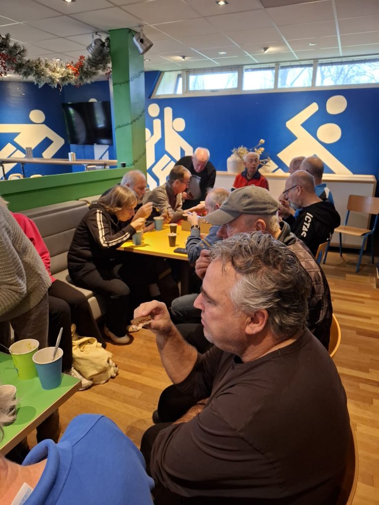 Onze OldStars hebben woensdag hun laatste training van dit jaar gehad. Onder leiding van Lex Bruijn werd er onder andere flink bewogen op (kerst)muziek. Na afloop werden ze verrast door een warme pan snert, aangeboden en gebracht door Stichting WIN. Dat lieten ze zich goed smaken! Onze hartelijke dank hiervoor!